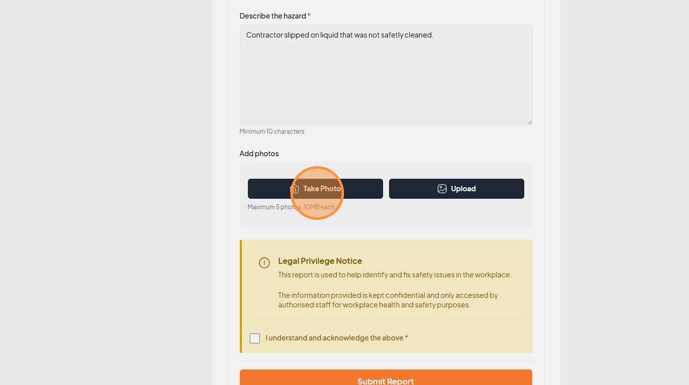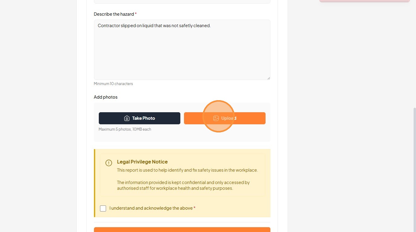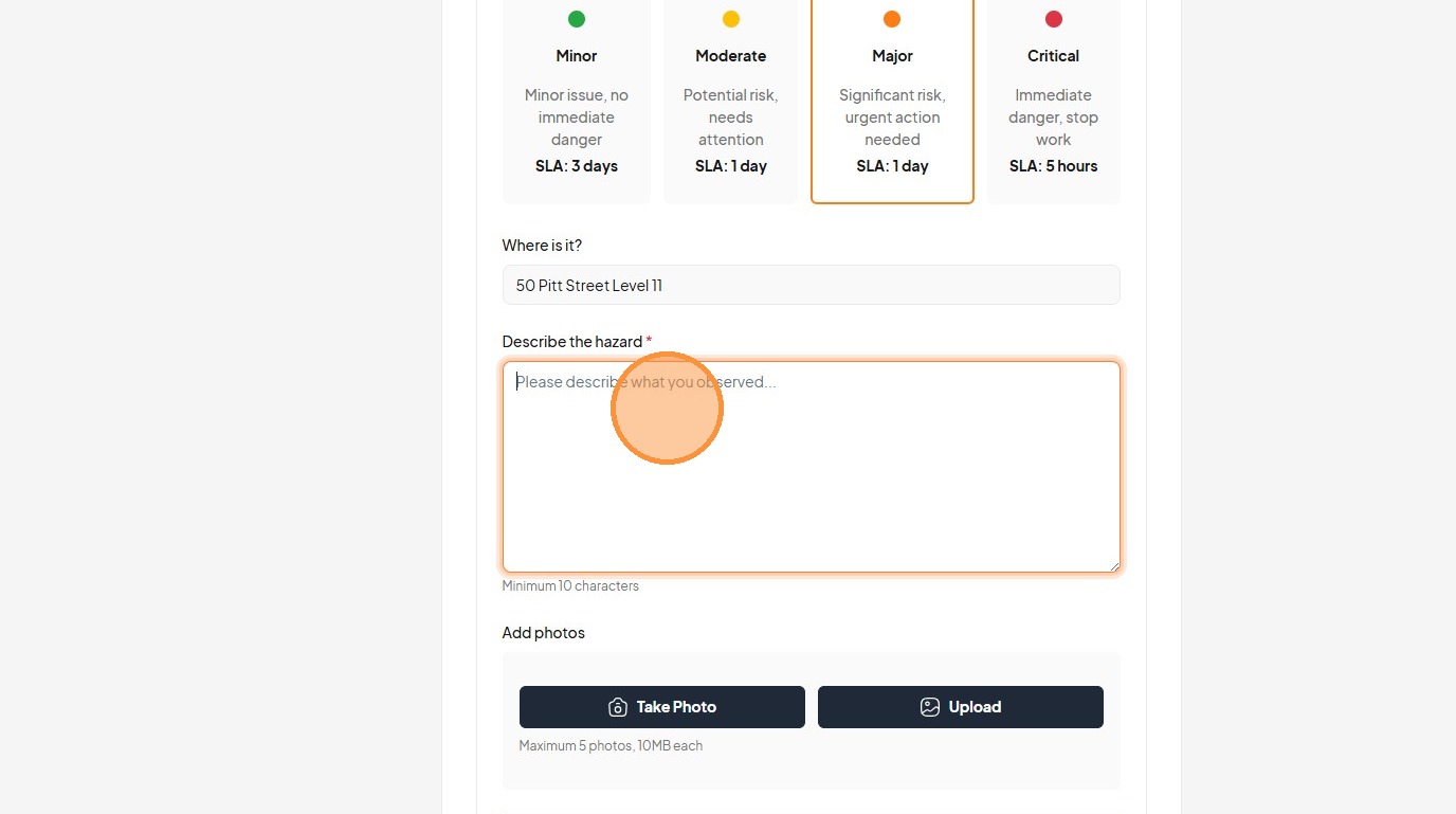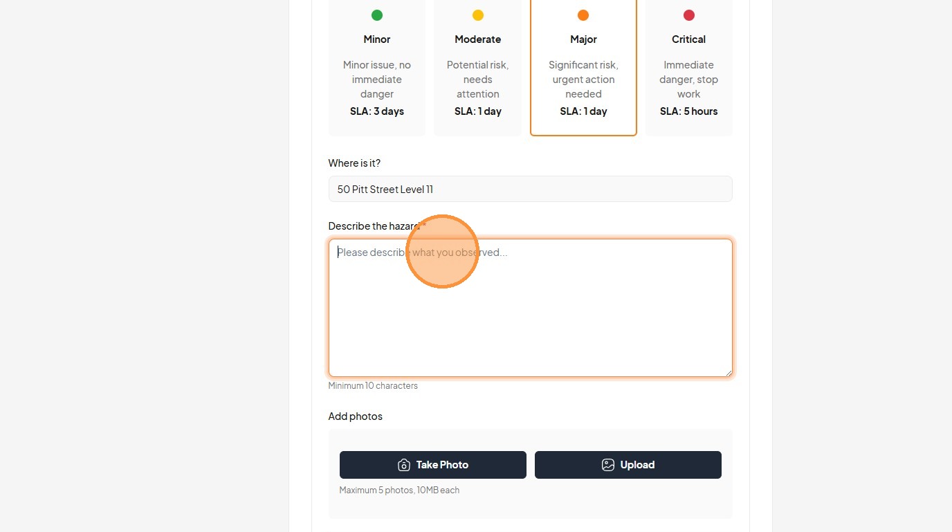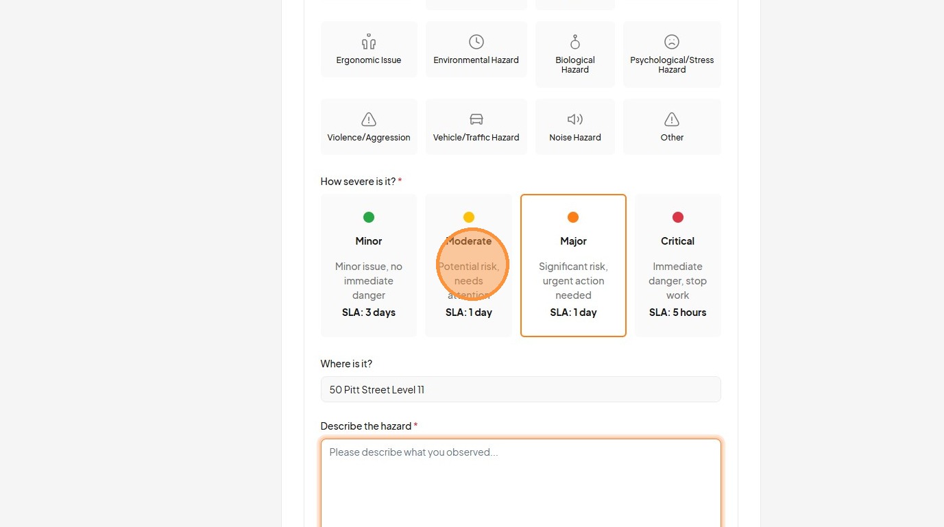 25. Click the "Describe the hazard *" field.