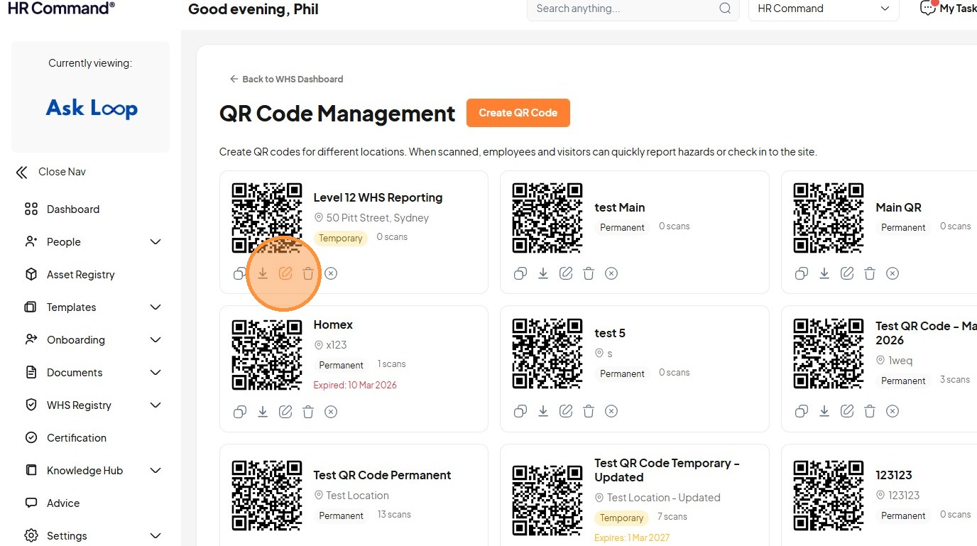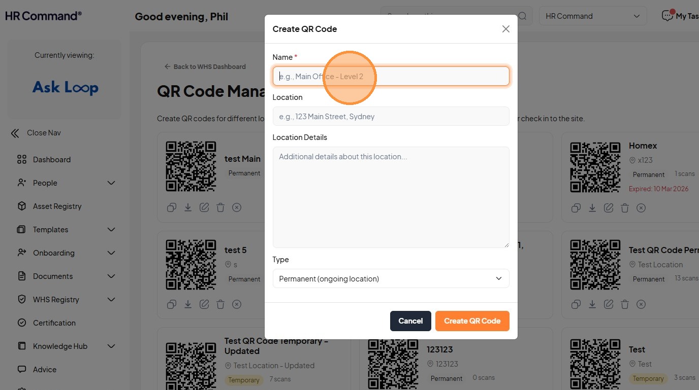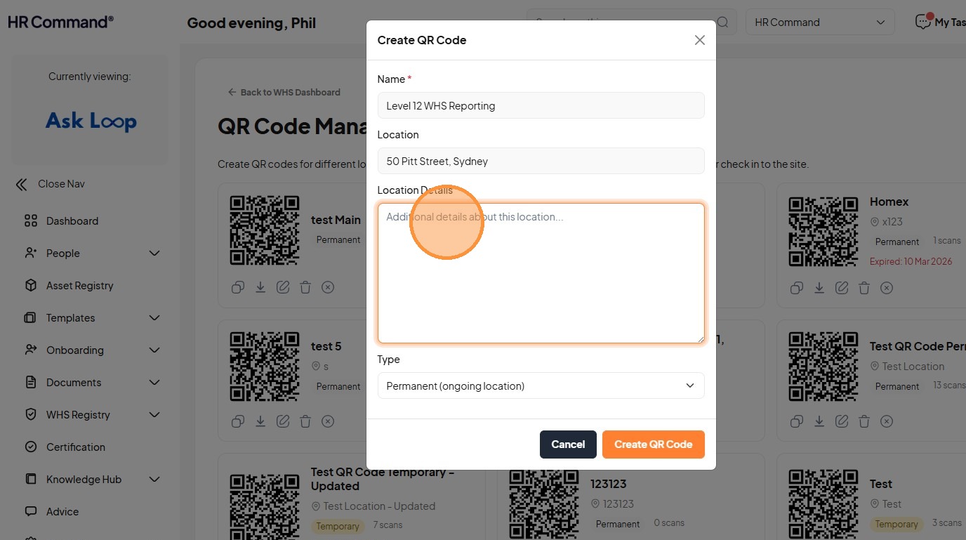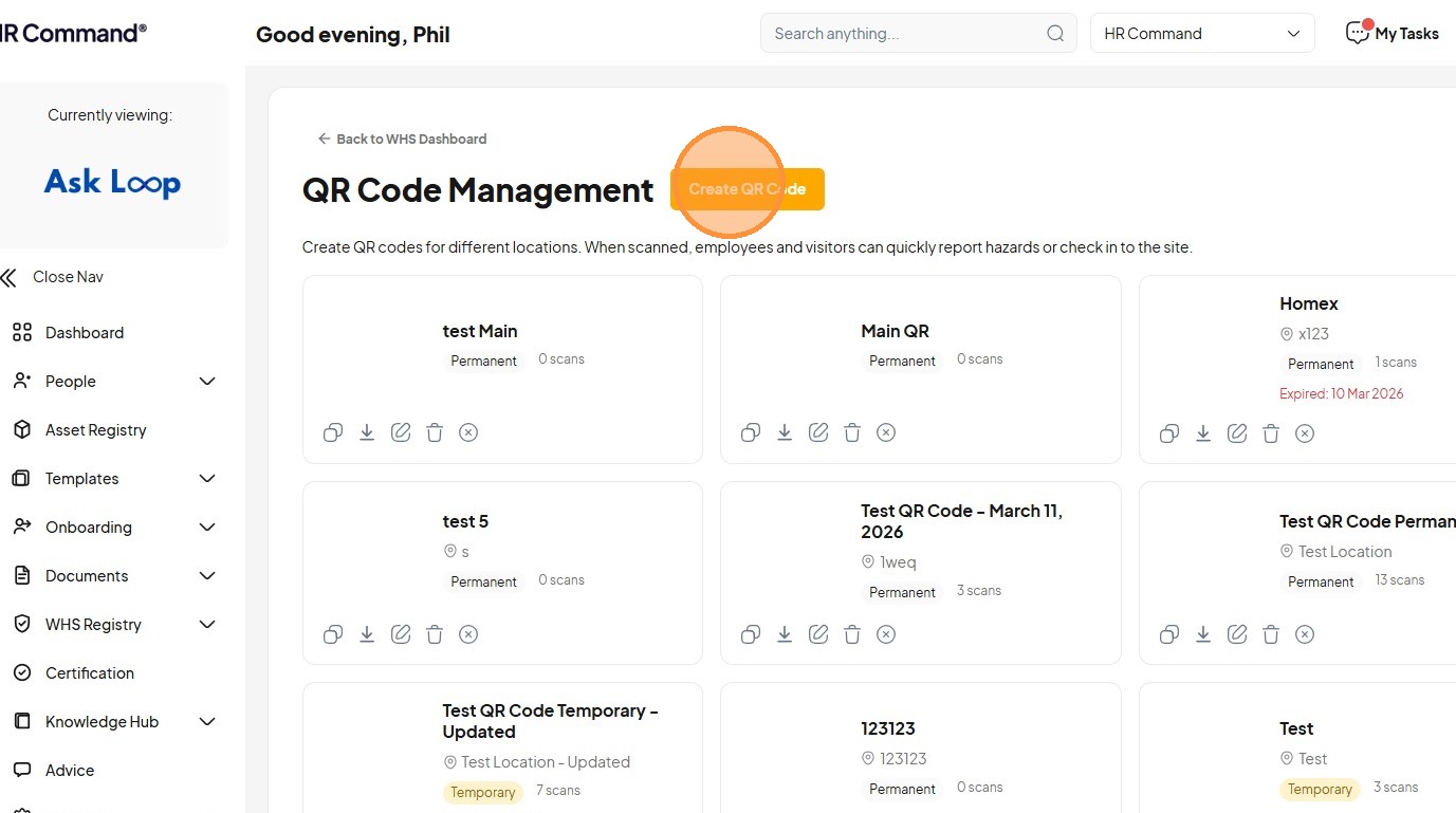 Learn how to generate custom QR codes for specific site locations and effectively submit new WHS hazard reports. This guide provides a clear walkthrough for managing site safety documentation and reporting urgent risks within the HR Command system.