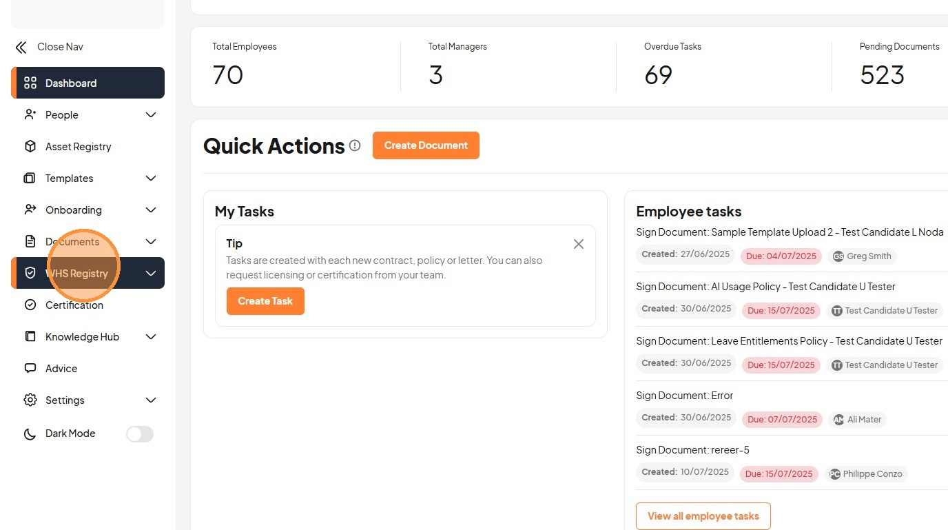 2. Click "WHS Registry"