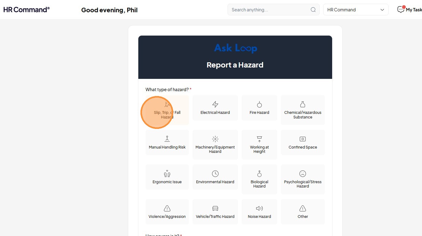20. Click "Slip, Trip, or Fall Hazard"