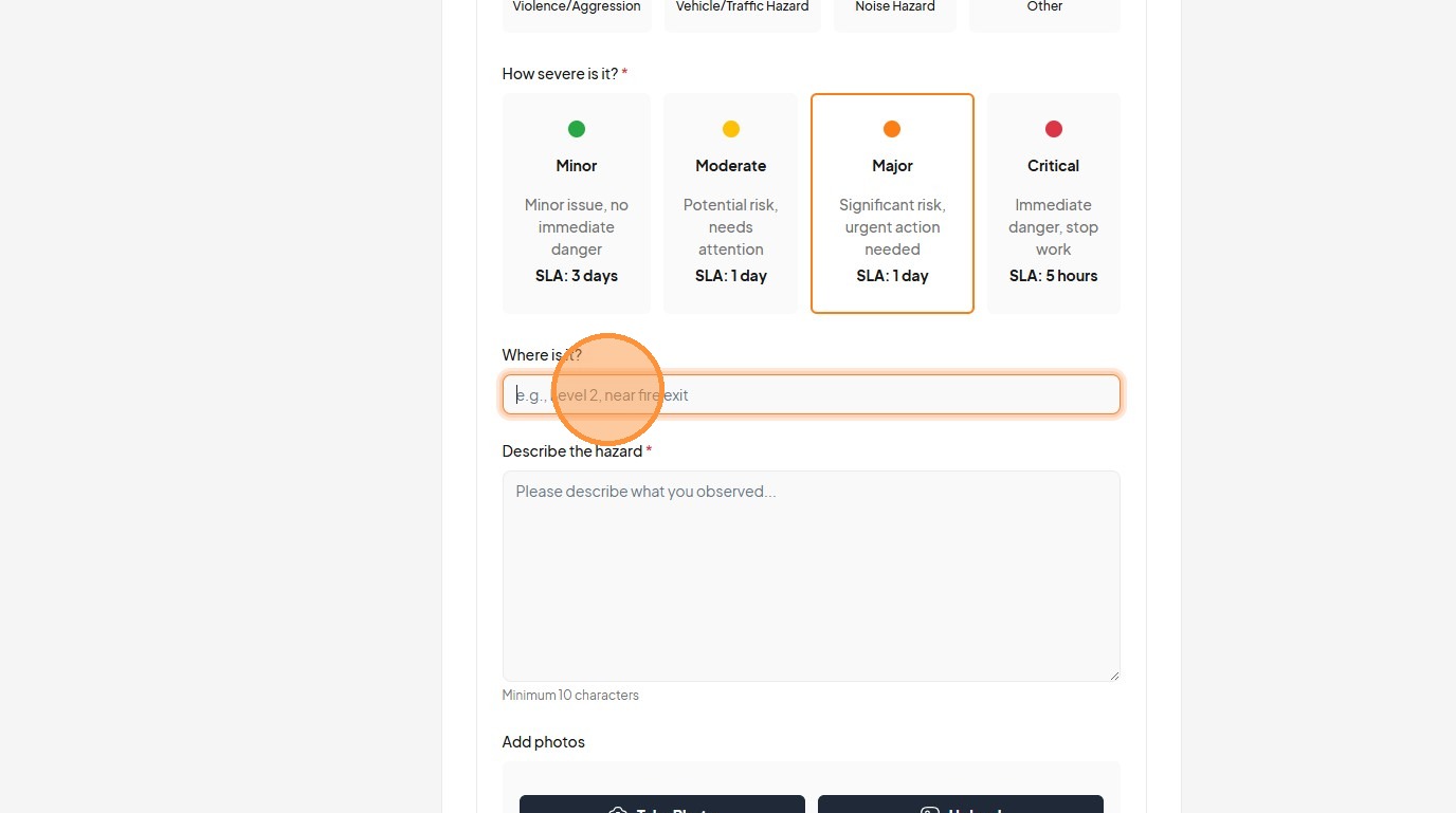 26. Click the "Describe the hazard *" field.