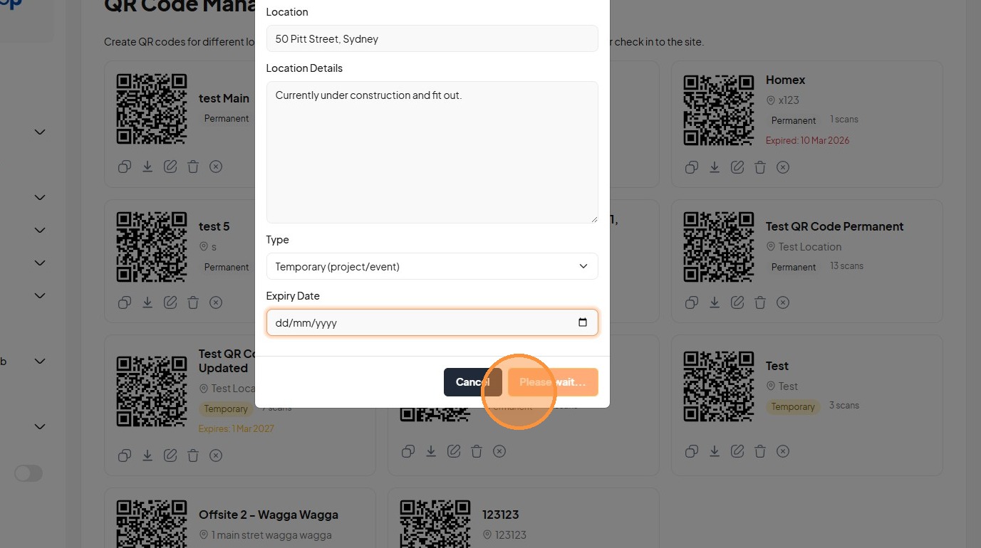 11. Click "Name * Location Location Details Type Permanent (ongoing location) Temporary (project/event) Expiry Date"