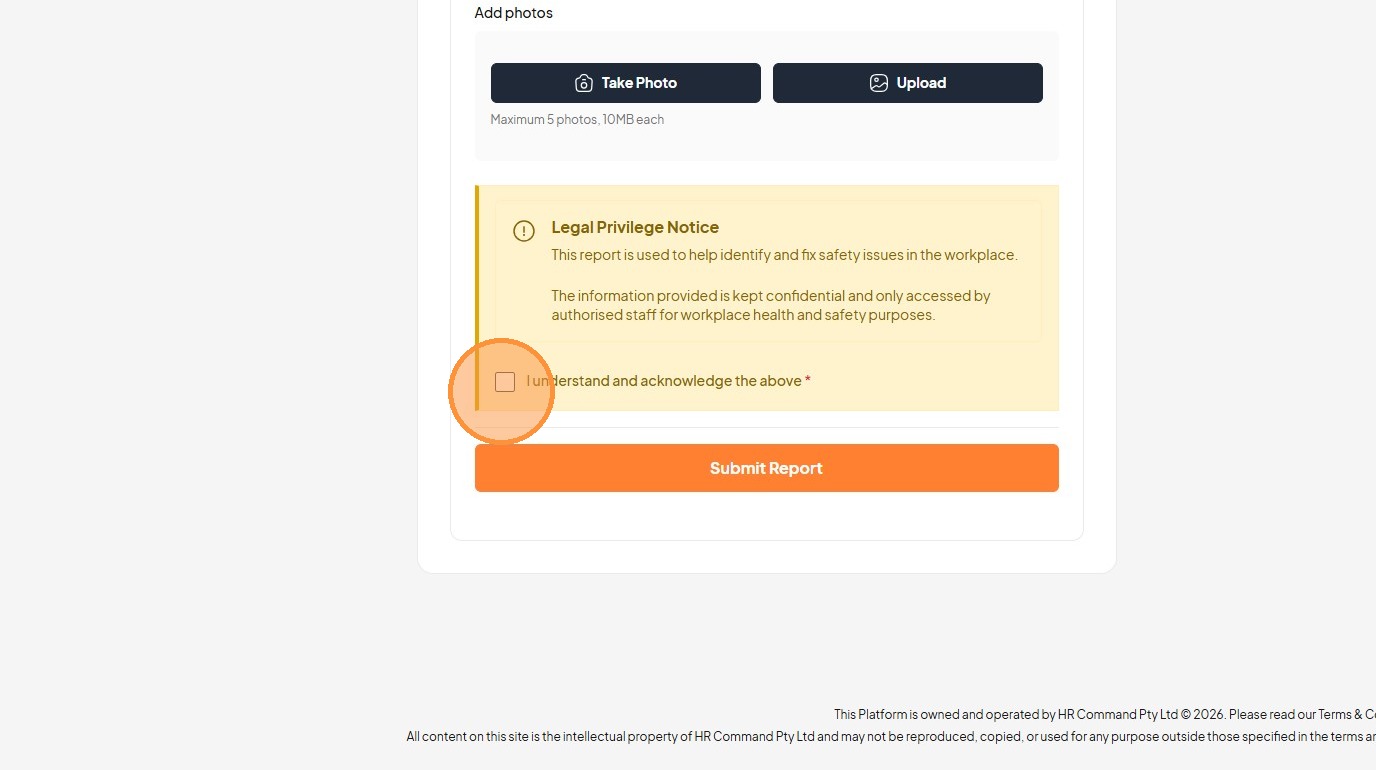 30. Click the "I understand and acknowledge the above *" field.
