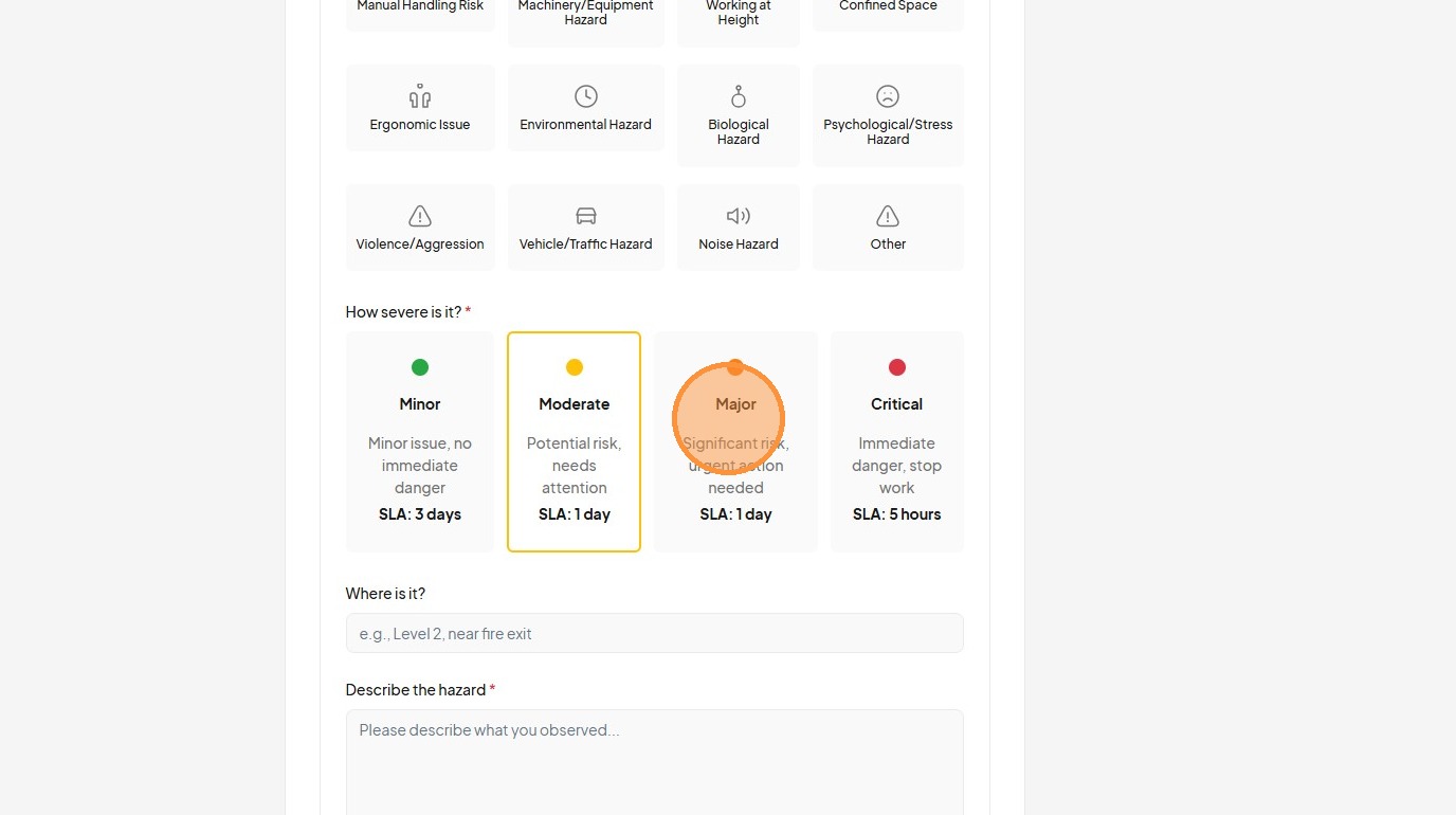 21. Click "Major Significant risk, urgent action neededSLA: 1 day"